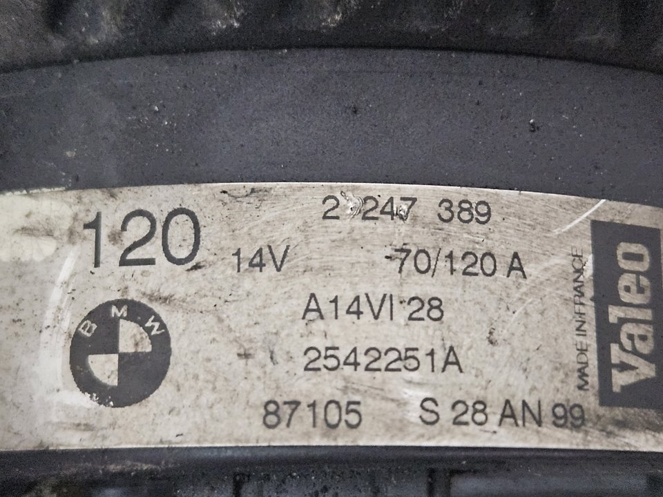 Artículo: ALTERNADOR Marca: BMW Modelo: SERIE 3 BERLINA (E46) Fecha actualización: 24/03/2026 17:00 Referencia Visual: 2247389