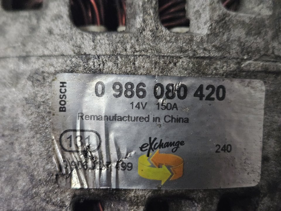 Artículo: ALTERNADOR Marca: OPEL Modelo: VIVARO B FURGÓN/COMBI Fecha actualización: 29/12/2025 12:22 Referencia Visual: 0986080420