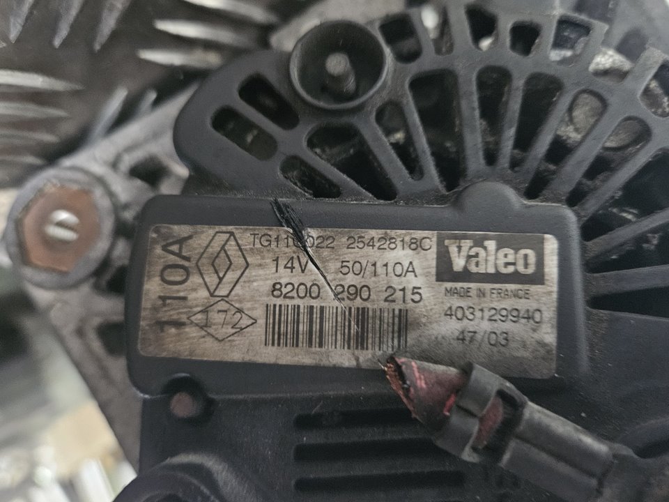 Artículo: ALTERNADOR Marca: RENAULT Modelo: MEGANE II BERLINA 5P Fecha actualización: 04/08/2025 15:08 Referencia Visual: 8200290215