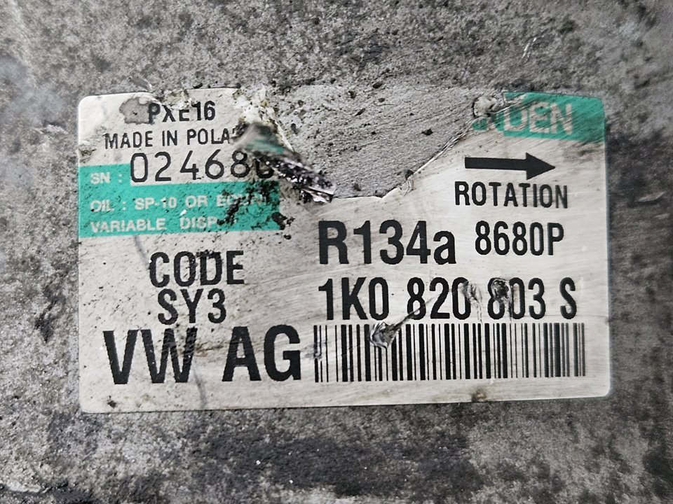 COMPRESOR AIRE ACONDICIONADO VOLKSWAGEN GOLF V (1K1)(10.2003) [1K0820803S]