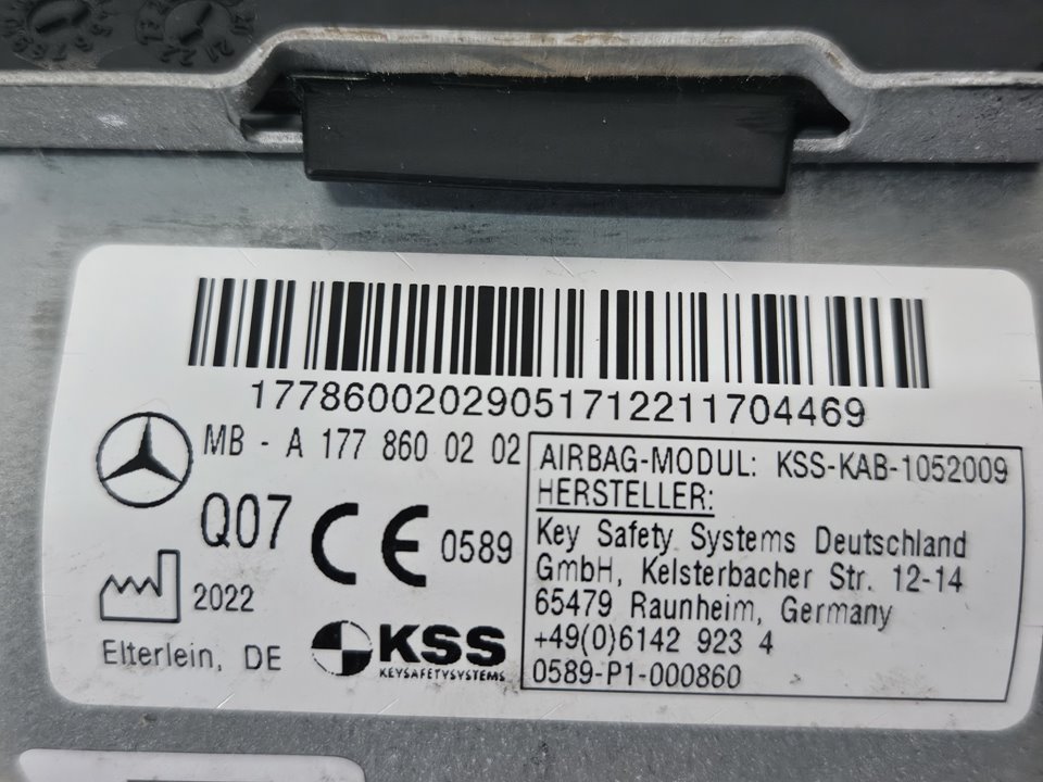 Referencia Visual: A1778602601 AIRBAG RODILLA – A1778600202 CINTURON D.D – 309465999228 CINTURON D.I – 309465799228 ANILLO AIRBAG – 1013937112 AIRBAG DEL IZQ – A0008604101 SIN CENTRALITA!!!