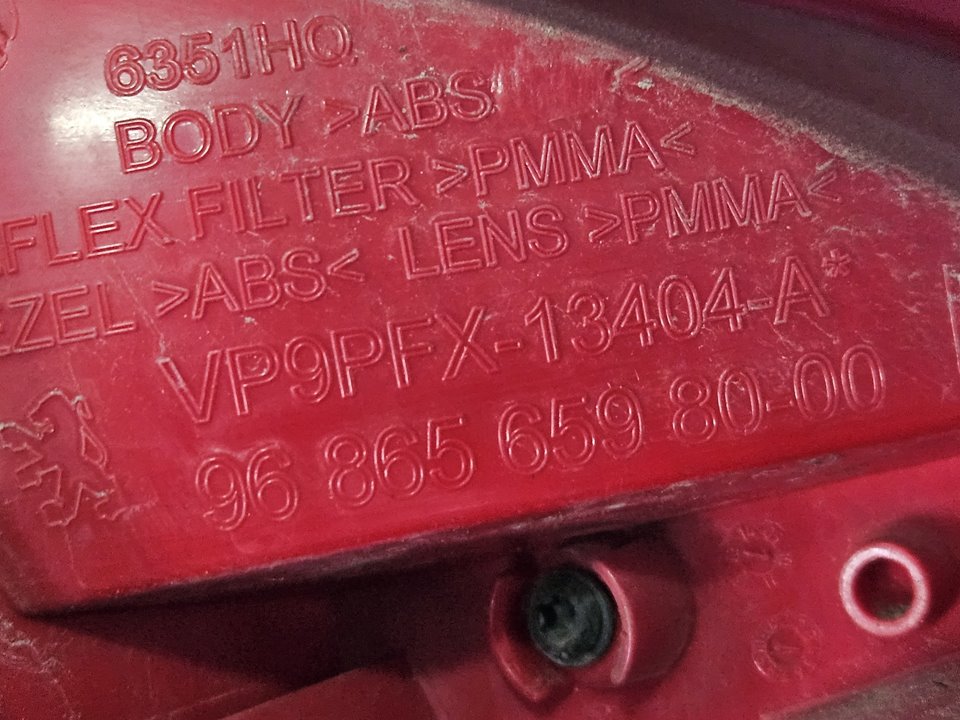 Artículo: PILOTO TRASERO DERECHO Marca: PEUGEOT Modelo: 207 Fecha actualización: 22/01/2026 12:55 Referencia Visual: 9686565980
