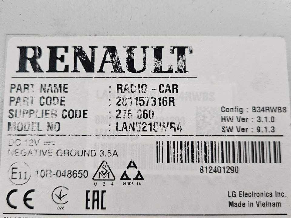 SISTEMA AUDIO / RADIO CD RENAULT CLIO IV GRANDTOUR [281157316R]